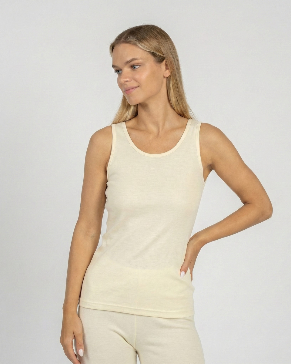 Sleeveless 100% Merino wool shirt is designed as a high-performance thermal tank top for layering under sweaters, jackets, or sportswear. Fine Merino fibers absorb moisture vapor from the skin and release it outward, keeping you dry during activities like hiking, skiing, running, and training. The 160 gsm fabric traps warm air for insulation while remaining breathable, preventing overheating during movement. High-Quality Merino wool continues to insulate even when damp and naturally resists odor buildup. A versatile undershirt for winter wear, outdoor sports, travel, and everyday active use.