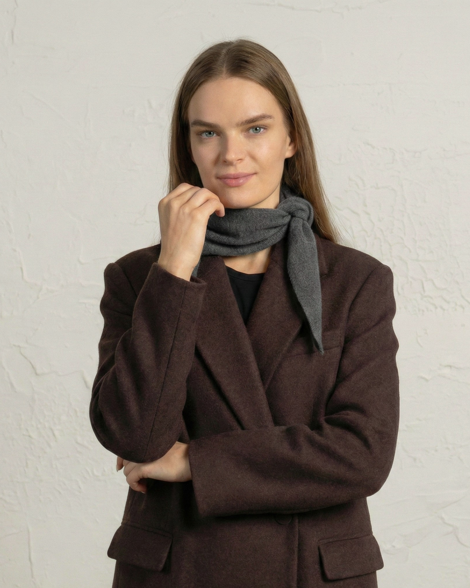 Cashmere neckerchief gently embraces the skin while providing warmth on chilly days. A versatile design drapes softly and ties with ease, letting you style bandana as a neck scarf, head accessory, or chic accent for any occasion. Designed to stay in place without flattening or ruining hairstyles, this knit bandana is suitable for both women and men and keeps you looking effortlessly polished all day long. Feel unmatched softness with our knit triangular bandana scarf, made from luxurious 70% Cashmere and 30% Merino wool. Elegant, functional, and durable, this winter headscarfbrings warmth and sophistication to your outfit.