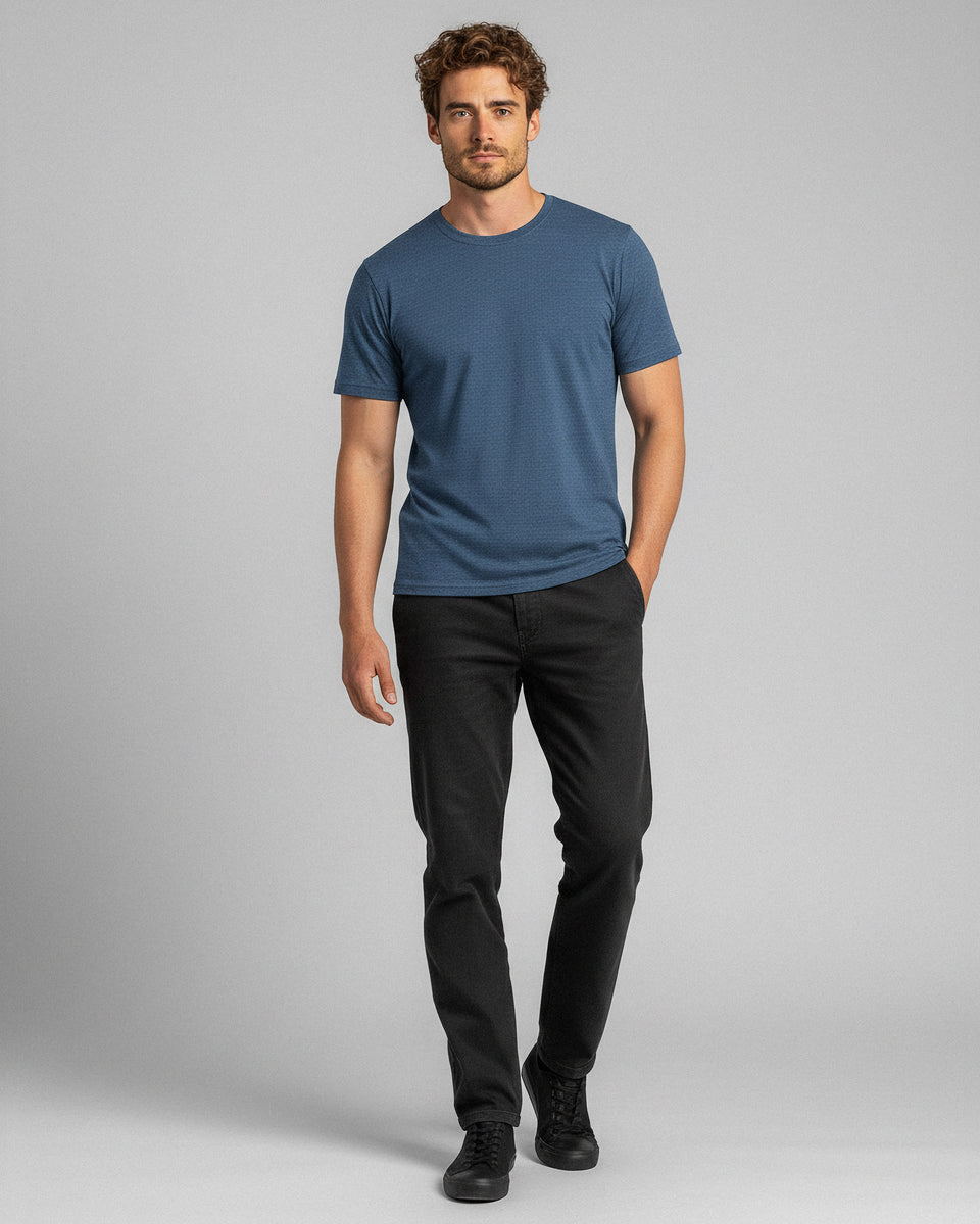 Made from lightweight 100% Merino wool (160gsm), this men’s short-sleeve t-shirt delivers natural softness, breathability, and all-day comfort. Designed for relaxed days, travel, and everyday wear, the regular-fit tee moves easily with you and feels great from morning to night. Merino’s fine fibers naturally regulate body temperature, trapping warmth when it’s cool and releasing excess heat when it’s warm for comfort in every season. Merino tees' antibacterial properties prevent odor buildup, keeping you fresh even after multiple wears. Easy to care for and quick to dry, this Merino top blends effortless style with the performance of nature’s finest fiber – perfect for modern, low-maintenance living.