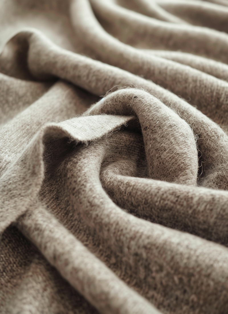 Cashmere's origin in the soft undercoat of cashmere goats contributes to its luxury status, with its fine, lightweight fibers prized for their exceptional warmth and luxurious softness.