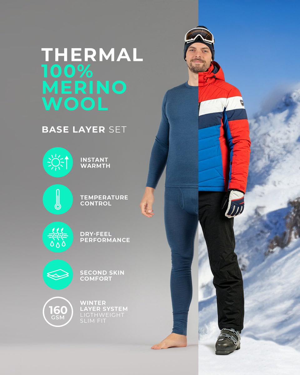 Consciously crafted from 100% Merino wool, this men’s lightweight thermal set pairs a classic long-sleeve tee with moisture-wicking trousers – built for comfort, mobility, and easy layering. The fabric naturally manages moisture by pulling sweat away from your skin and drying quickly, helping you stay comfortable through changing temperatures and activity levels. Designed for movement, the trousers feature flatlock seams to reduce bulk and friction, plus a warm-yet-breathable feel that works as a base layer under outerwear or as a standalone outfit in milder conditions. Soft, smooth, and naturally stain resistant, both pieces are easy to care for and made to keep up with everyday wear. From outdoor barbecues to laid-back Sundays, this two-piece combo is ready for whatever your day looks like.