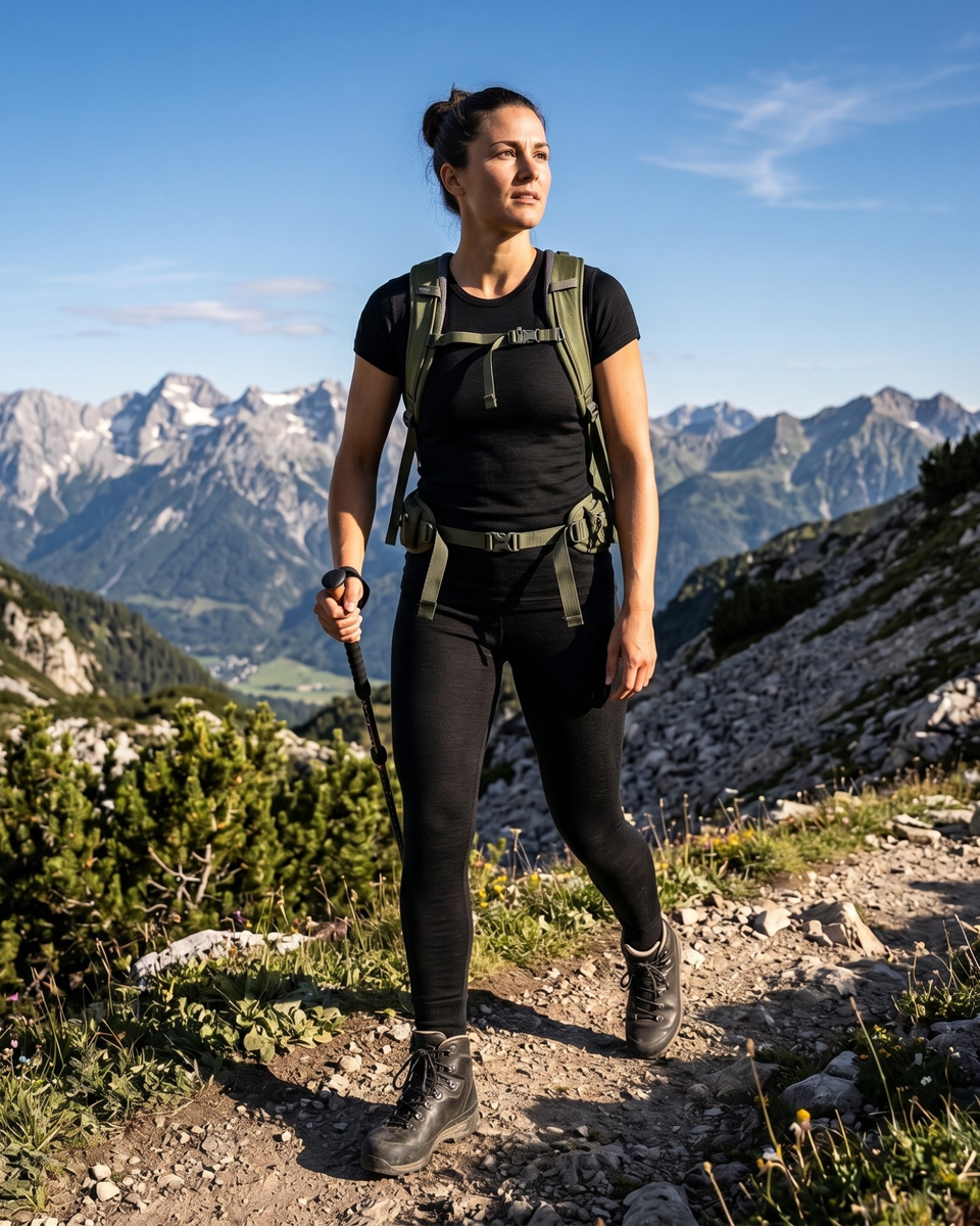 Designed for hiking, layering, and active days outdoors, this women’s set pairs a slim fit crew neck t-shirt with lightweight leggings for breathable comfort and natural freedom of movement. Made from 100% Merino wool, Merino set helps regulate body temperature, manage moisture, and stay fresh for longer wear on the trail or on the go.