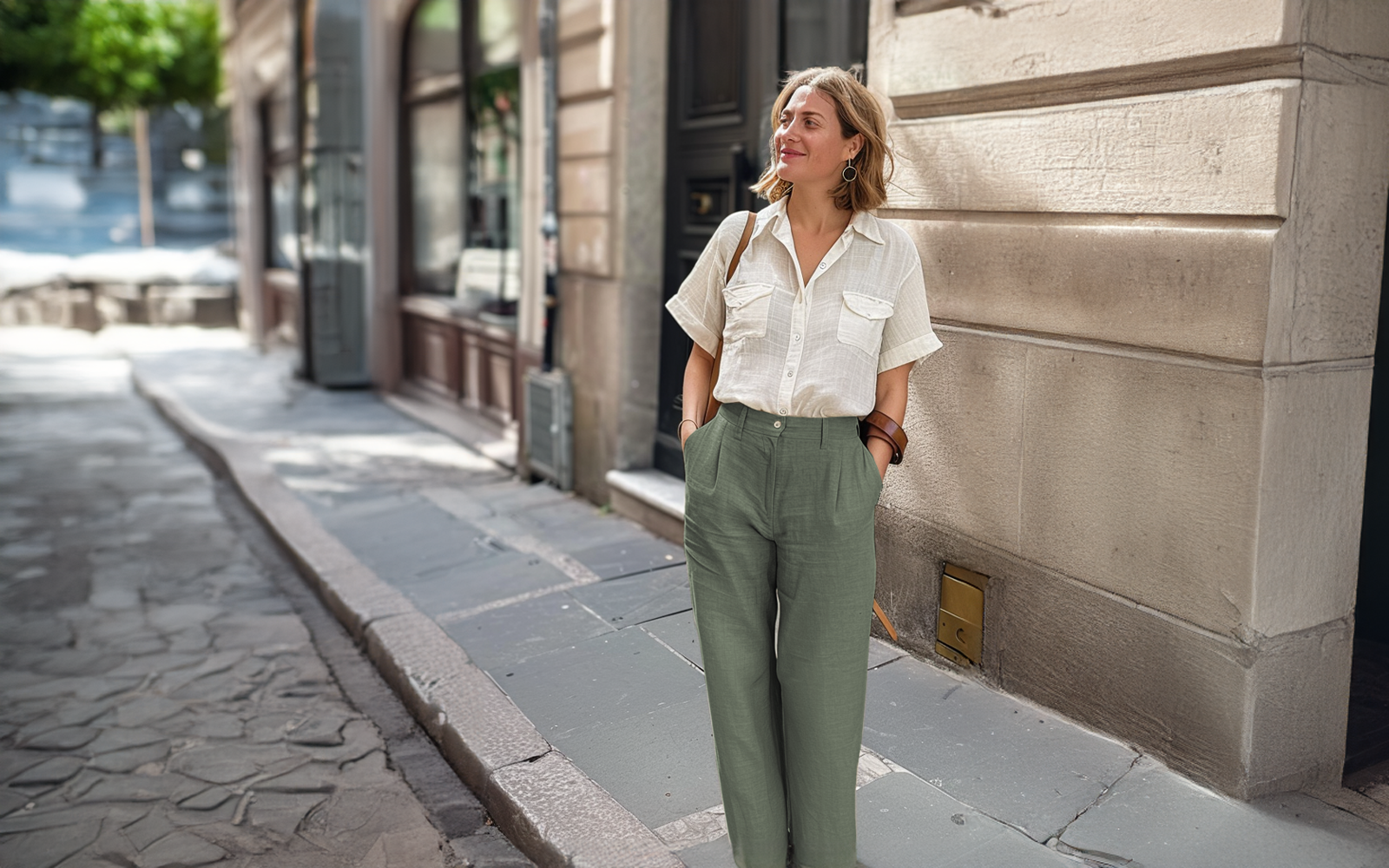 "I like the pants even more than in the pictures. I would describe the green as more sage than olive but I really like it. The pants are also very neatly sewn. I can only recommend this shop :)"