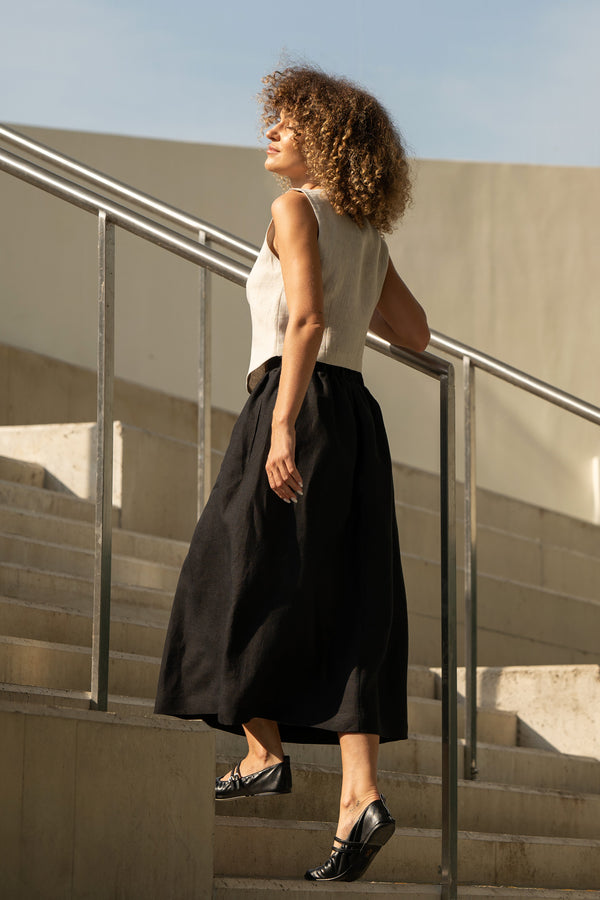 Linen, crafted from pure, GMO-free flax, thrives on rainwater alone, leaving no waste and fully returning to nature.