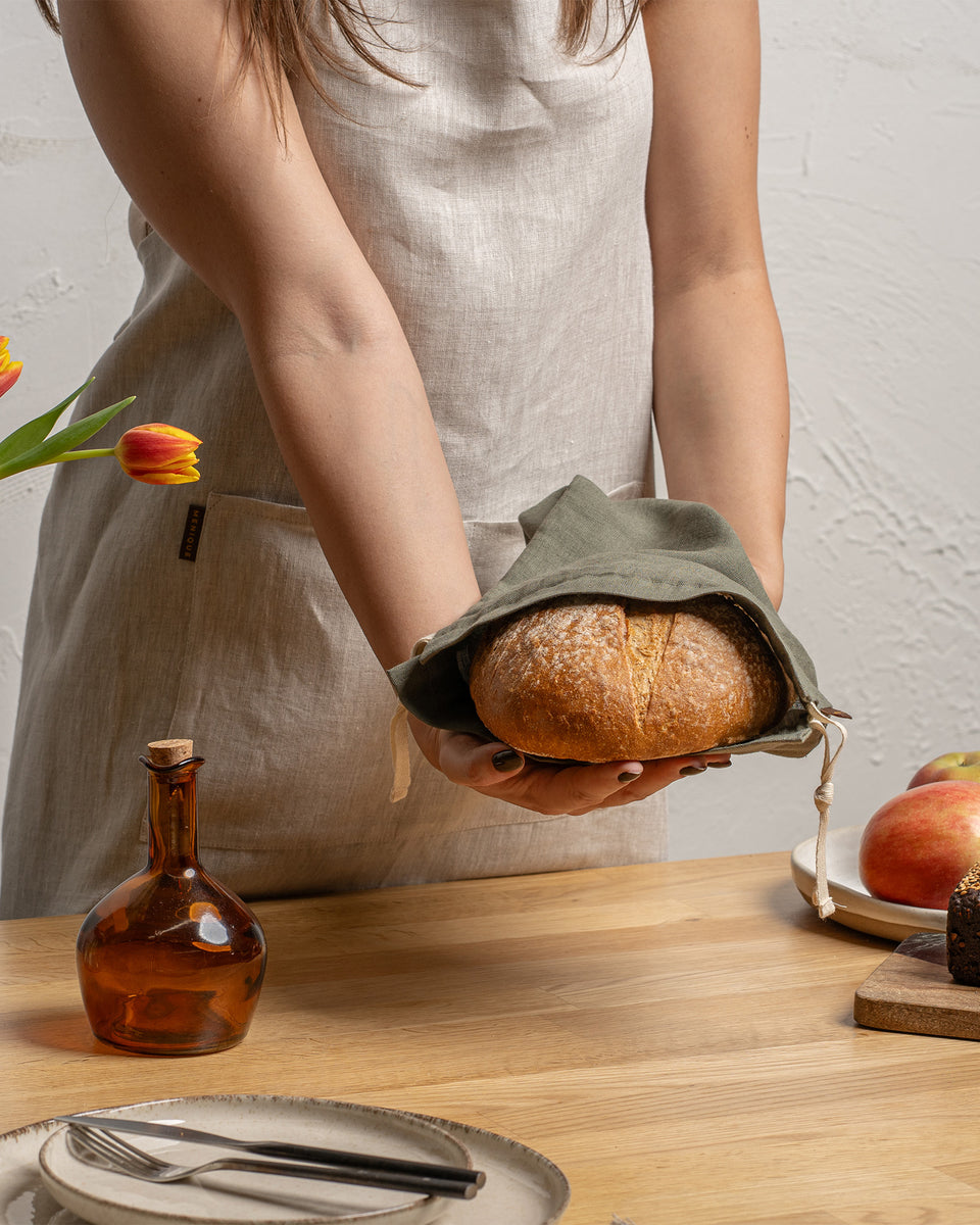 Our 100% linen bread bags are the perfect solution for keeping your bread fresh and reducing waste. Made from premium 100% linen, these bread bags are the perfect choice for anyone looking to keep their baked goods fresh in a natural, breathable bag with drawstrings. We offer two natural color options and three size variations: medium bread bag 20x35cm, small bread bag 25x45cm, and unique baguette bag 10x65cm. These bags offer more than just bread storage - they are ideal for keeping any baked item fresh and can be beautifully reused as gift bags for your homemade sweets.