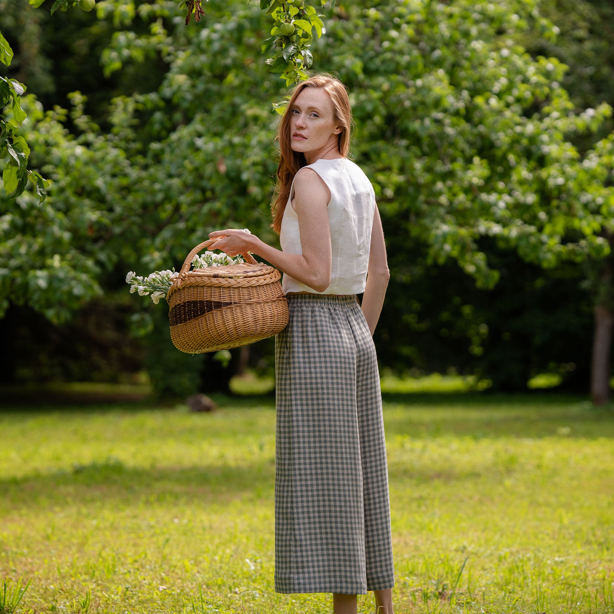 Green Gingham Linen Culottes Lana