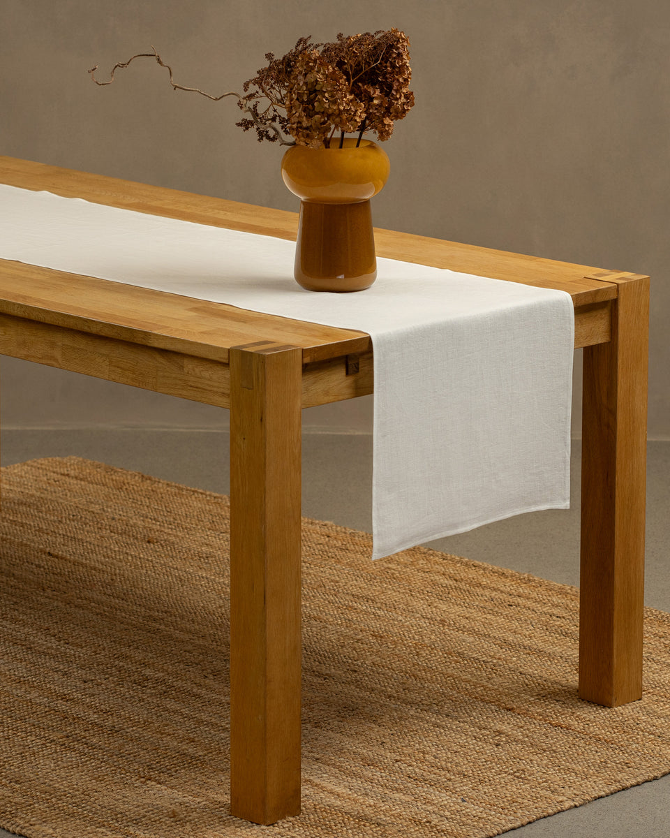 Discover the perfect table runner designed to suit any occasion, whether it's a casual family meal or an elegant holiday gathering. Available in a range of colors, it effortlessly enhances your dining experience. Handmade by menique’s skilled artisans, it brings a relaxed, welcoming vibe to your table. Plus, it’s machine washable, making cleanup easy so you can spend more time enjoying the moments that matter.