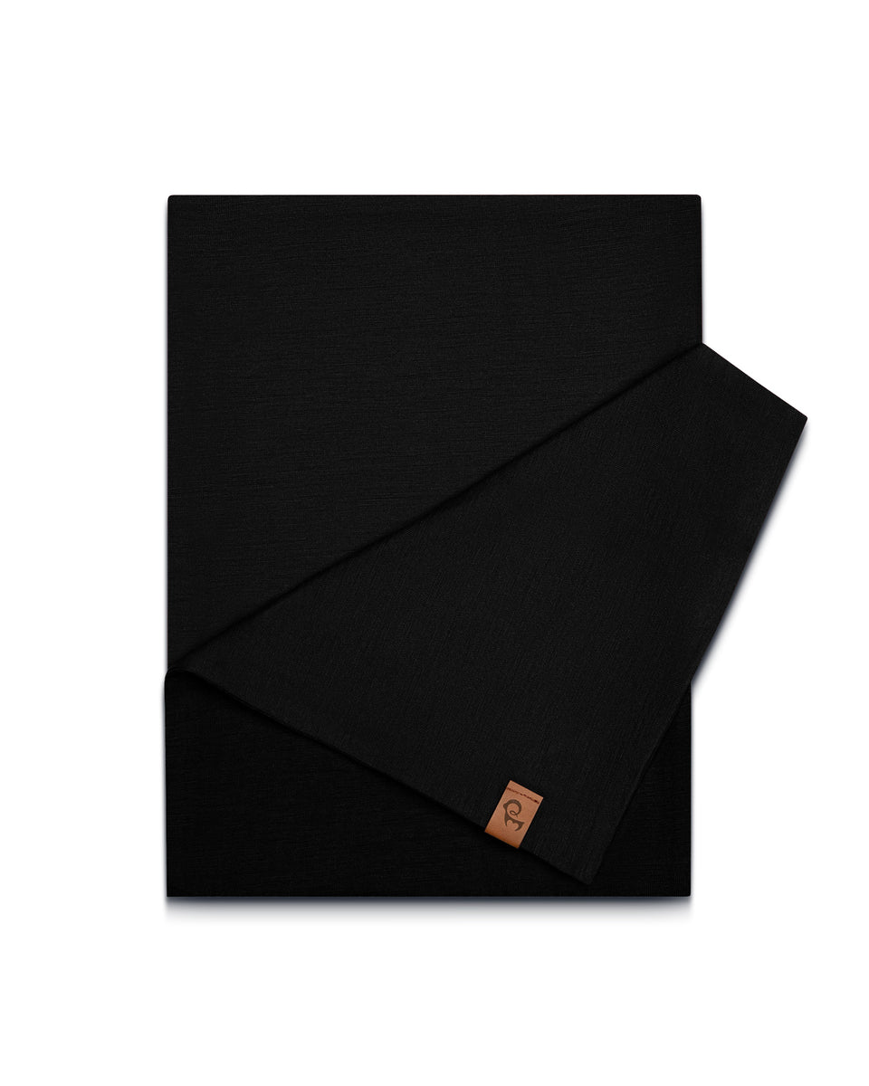 Ethically crafted from natural Merino wool, this static-resistant scarf is the perfect transition piece for fluctuating temperatures. Thick, warm, and incredibly soft, it's ideal for everyday wear or pairing with a tailored suit, jacket, or evening attire. The unisex black scarf is versatile and practical, offering warmth and style whether you're out for a short walk or heading to work. Long enough to wrap around your neck multiple times, the midweight scarf features Merino wool’s antimicrobial, temperature-regulating, and breathable properties, keeping you warm and dry. Plus, the more you wear it, the softer it becomes.
