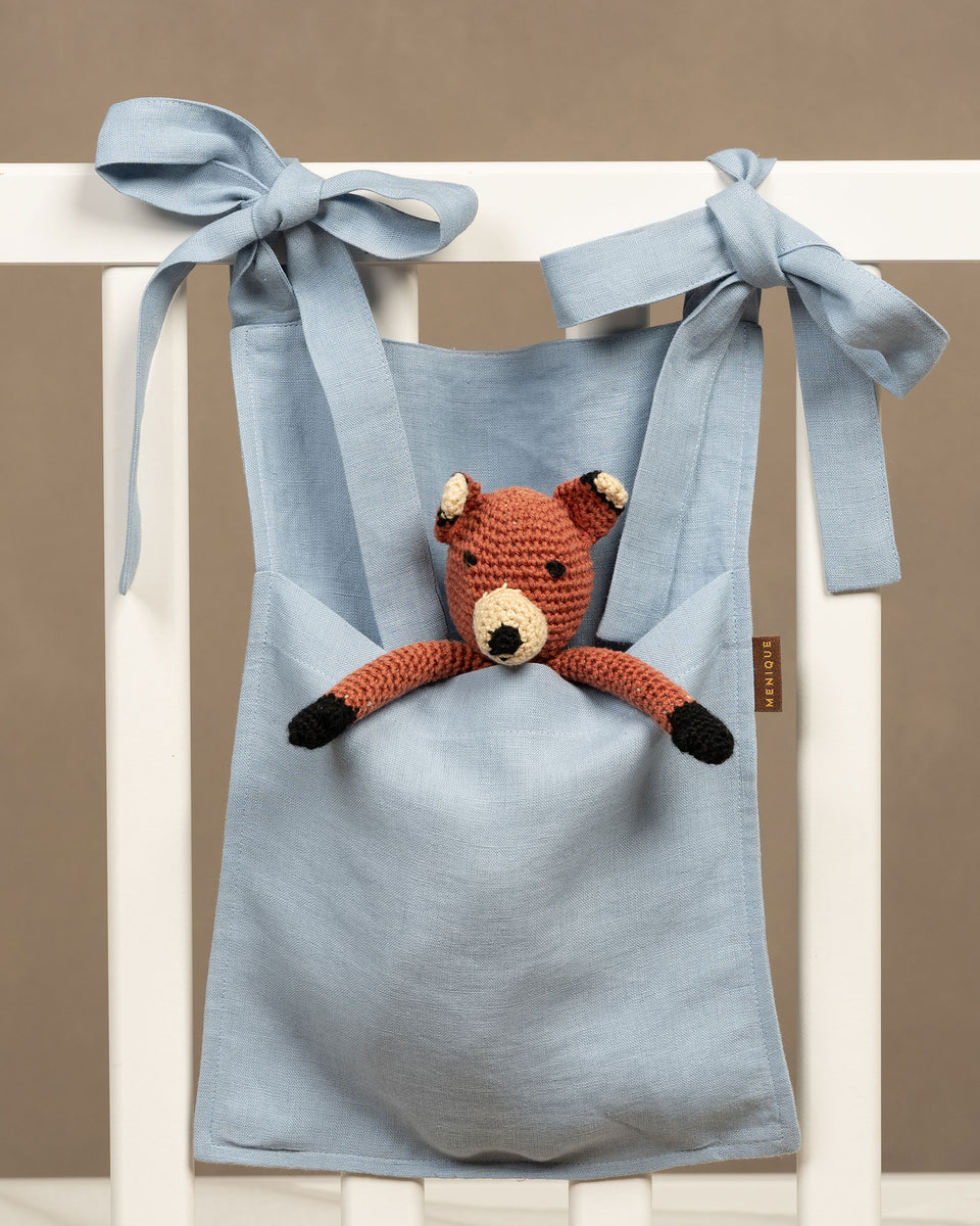 Increase your storage space with our hanging linen crib storage bags, featuring strong and wide adjustable straps, making them easy to hang on the crib. The possibilities are endless: diapers, books, toys, baby wipes, and more can be placed in our 100% linen pocket organizers.