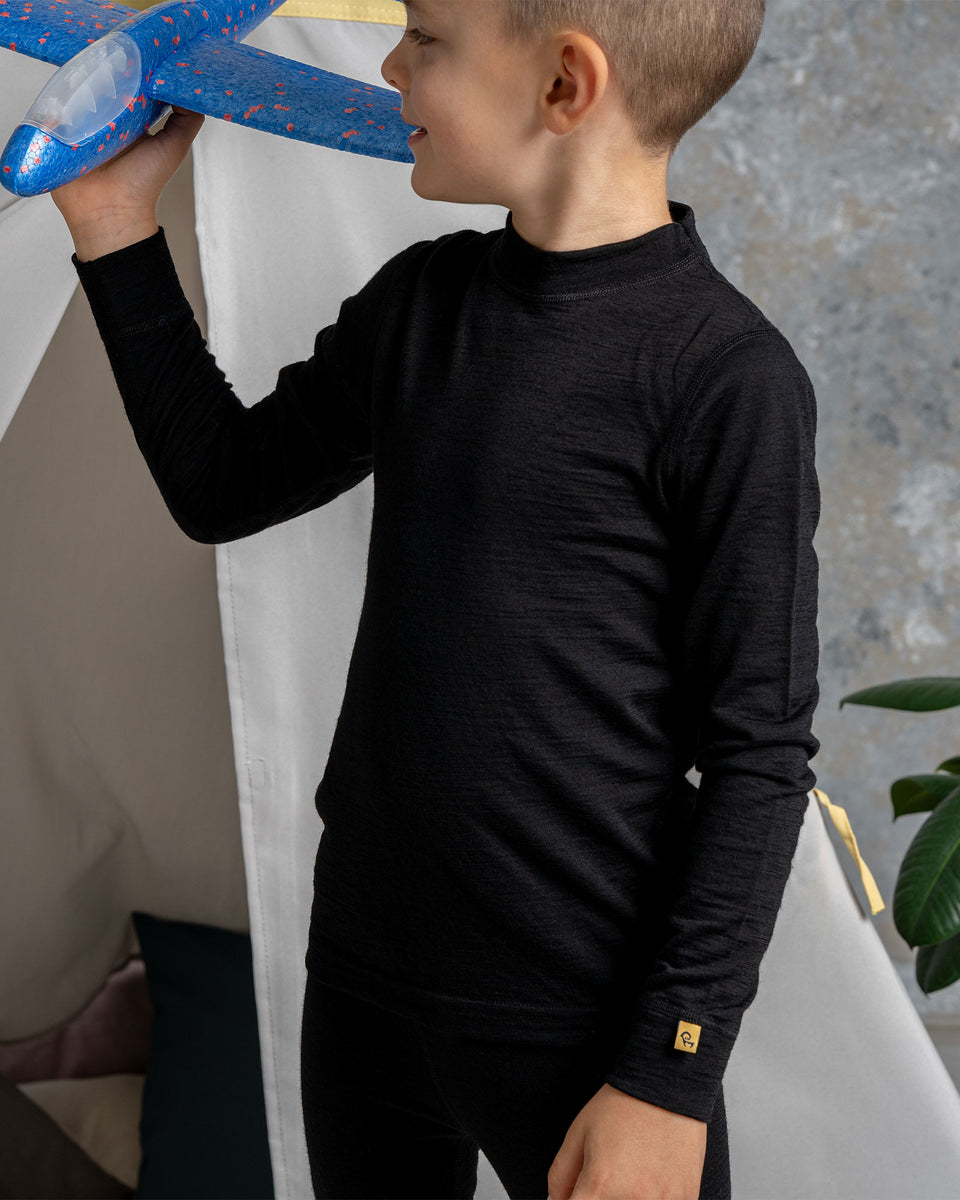 This luxuriously soft top, made from 100% Merino wool, wraps your little one in comfort, preventing overheating while wicking moisture away for all-day coziness. Perfect as a thermal base layer, the non-itchy long sleeves and extra body length ensure your child is comfortable in any weather. Ideal for toddlers exploring the world, the breathable Merino wool naturally regulates body temperature, making it a must-have wardrobe essential. Sourced from a family farm in New Zealand with strict animal welfare standards, this piece combines comfort, practicality, and sustainability for your mini's everyday adventures.