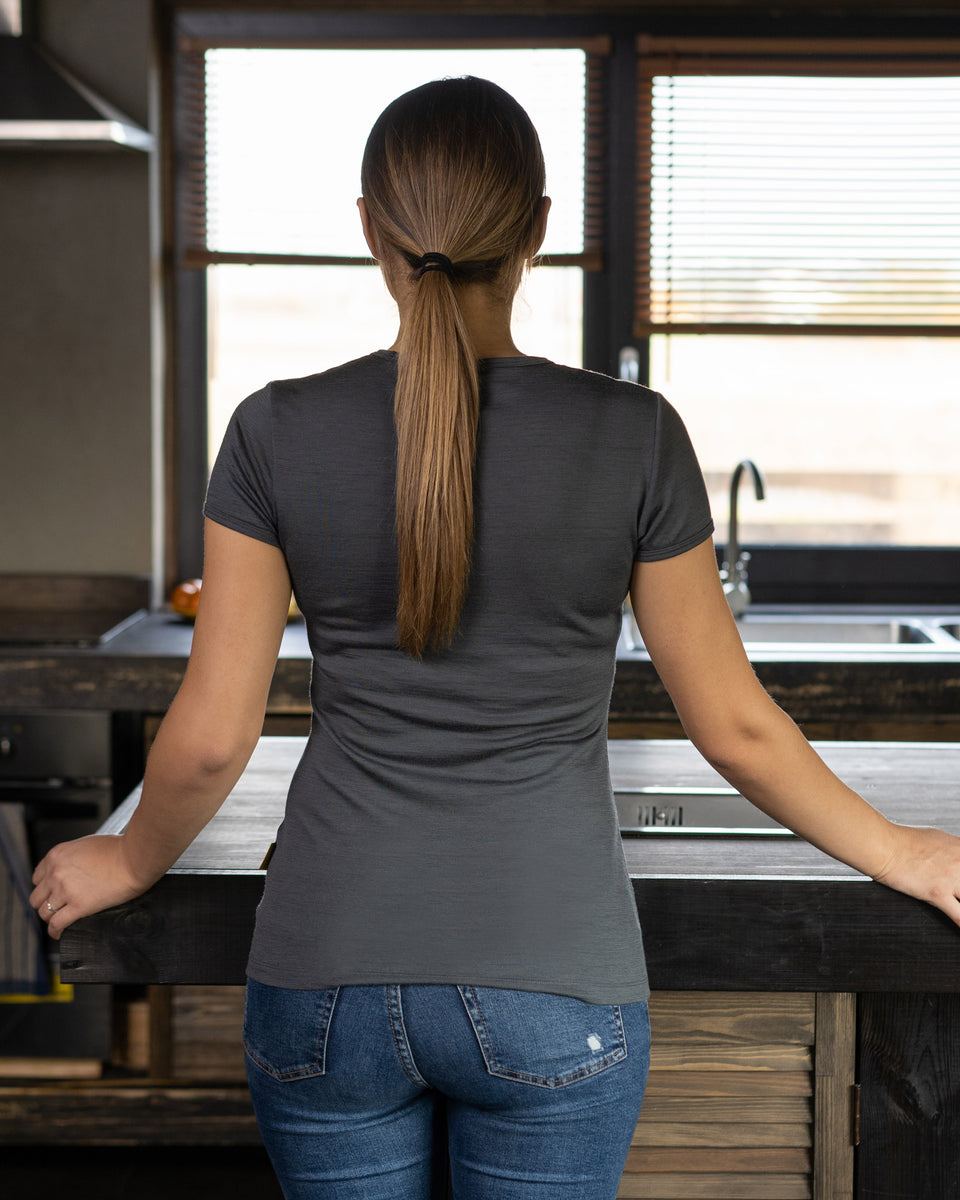 This light and airy short sleeve top, crafted from breathable 100% organic Merino wool, is perfect for both work and the gym. In a versatile denim blue color, it wicks moisture to keep you cool and dry while on the move. A must-have for everyday wear, it’s ideal for all-year-round use, offering comfort whether you're lounging at home or pushing your limits at the gym. With its odor-resistant and antibacterial properties, it stays clean and fresh for days, even with extended wear. This lightweight, high-performance tee is a versatile essential for any occasion.